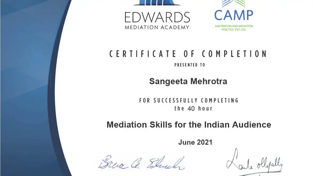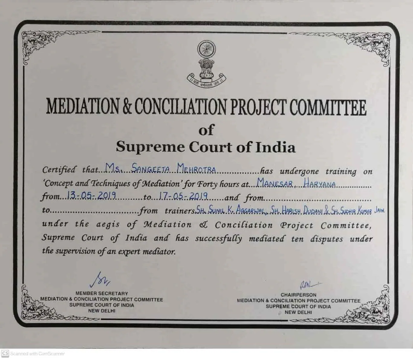 Within a pithy and constructive half-hour, Ms. Mehrotra laid out the mediation process, educated us on how mediation fit within the lndian justice system, and entertained possible scenarios that helped us understand what mediation could do for our family. Ms. Mehrotra is an astute and excellent listener and we felt like we were in good hands. Ms. Mehrotra is also wise when she says that whether it is litigation issue or life's problem, solutions are often simple, which we, as human beings, often make complex and complicated. We plan to heed Ms. Mehrotra's counsel for comprehensive dispute resolution.