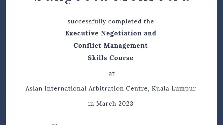 I have had the opportunity to associate with Sangeeta Ma’am on several occasions. Not only is she an extremely valuable advisor to us at Ex Curia International, but also a personal confidante for me. I had the privilege of being coached by Ma’am at the prestigious SIMI Singapore Mediation Competition where we secured Silver and Bronze position. She inspired me to take mediation dissemination forward, always supporting my professional endeavours at ECI. Truly grateful to Sangeeta Ma’am.