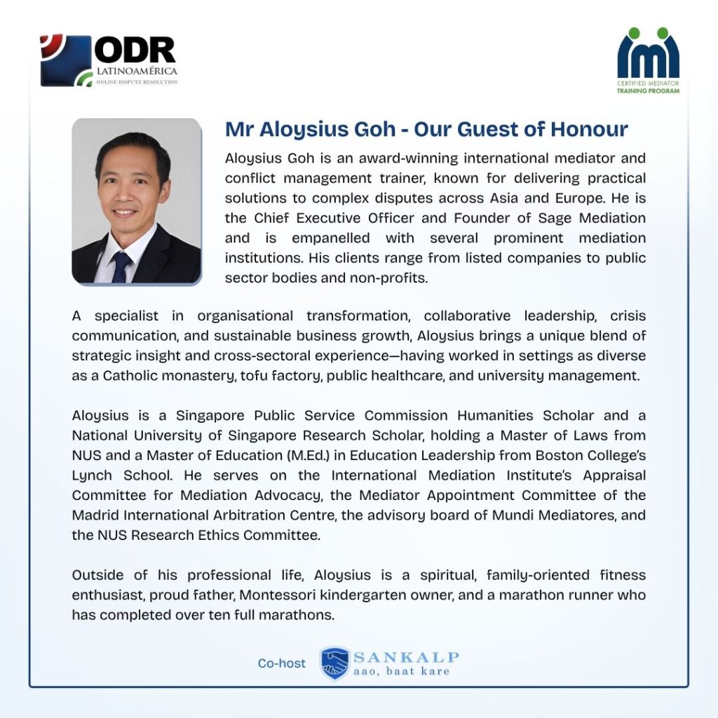 - Guest of Honour: Mr. Aloysius Goh, CEO, Sage Mediation, Singapore